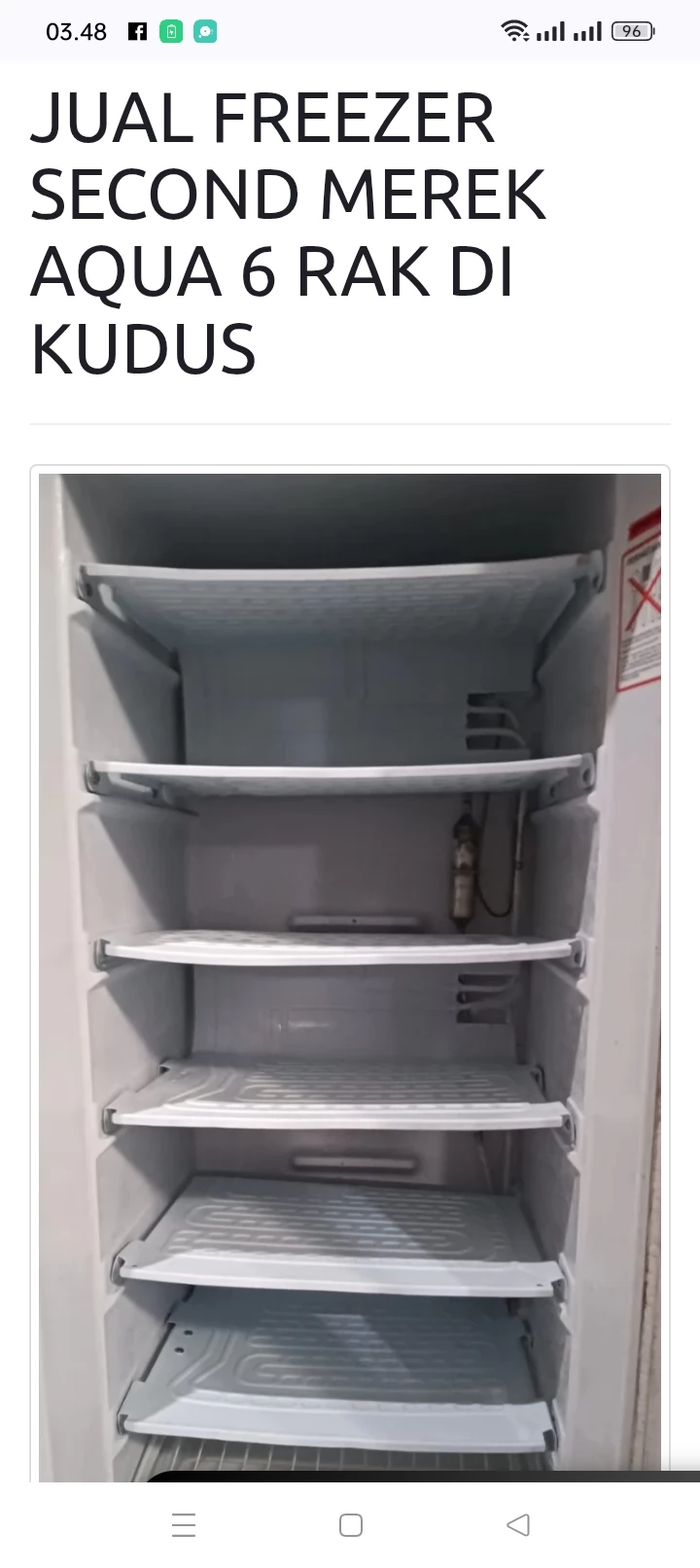Tersedia. Freezer second yang dijual sudah dicek fungsinya dan masih layak pakai. Kondisi dijelaskan secara jujur.